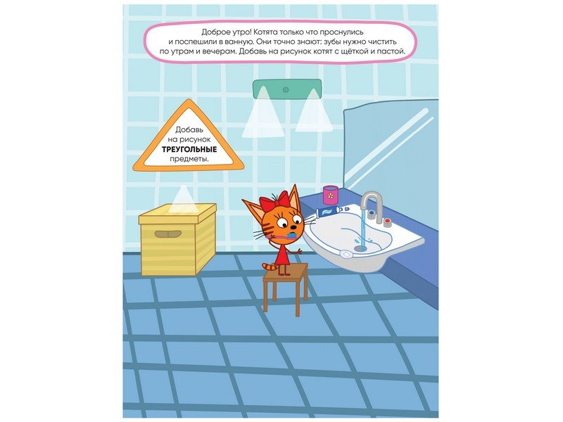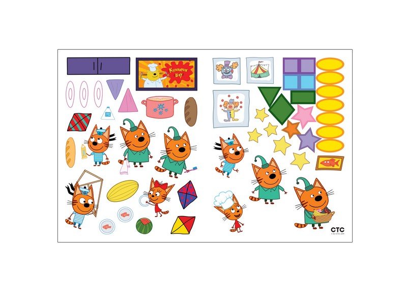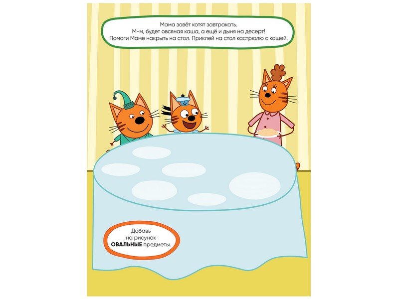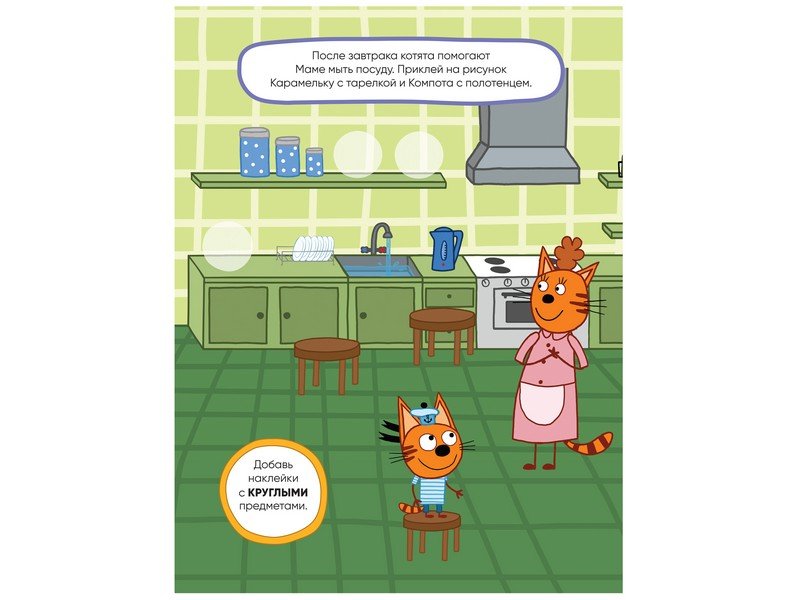 Распределяя яркие наклейки по страницам, он познакомится с геометрическими фигурами, сможет развить логику, внимание и мелкую моторику. Благодаря удобному формату заниматься по книге «Наш день» из серии «Три кота. Развивающие наклейки» можно где угодно: дома, в поездке, гостях и на прогулке.