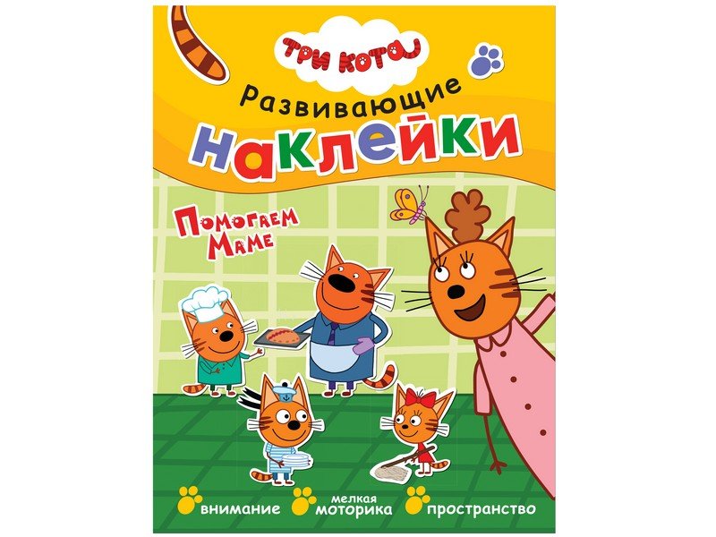 Миу-миу-миу! А ваш ребенок любит мультсериал «Три кота»? Тогда ему обязательно понравится эта красочная книга Три кота, Развивающие наклейки. Помогаем маме с многоразовыми наклейками. На ее страницах маленького читателя ждут любимые герои и увлекательные задания.