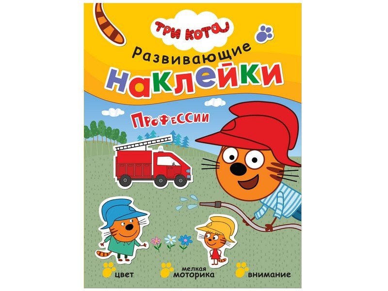 Миу-миу-миу! А ваш ребенок любит мультсериал «Три кота»? Тогда ему обязательно понравится эта красочная книга Три кота, Развивающие наклейки. Профессии с многоразовыми наклейками, рассказывающая о профессиях. Внутри маленького читателя ждут любимые герои и увлекательные задания.
