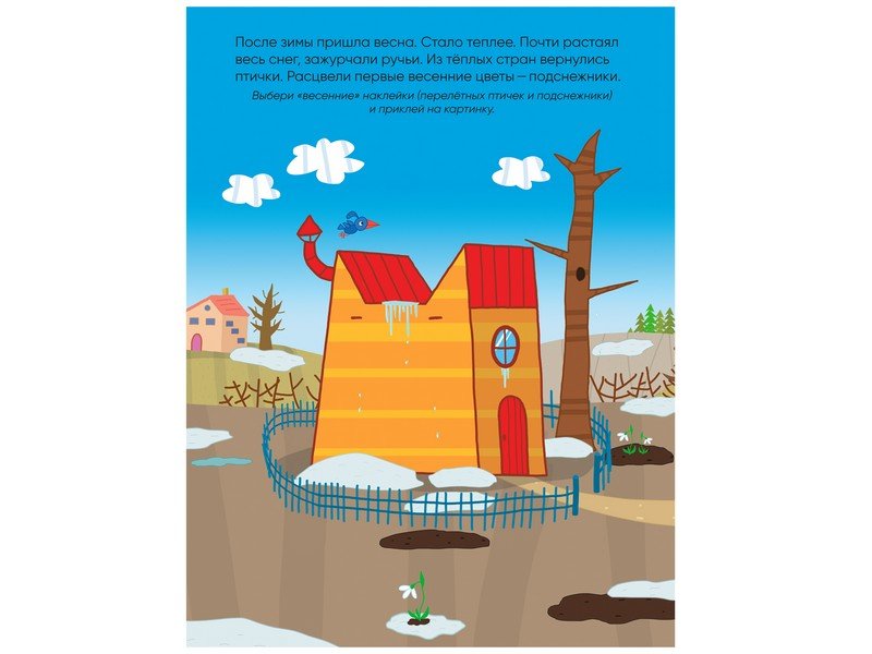 Благодаря удобному формату заниматься по книге «Времена года» из серии «Три кота. Развивающие наклейки» можно где угодно: дома, в поездке, гостях и на прогулке.