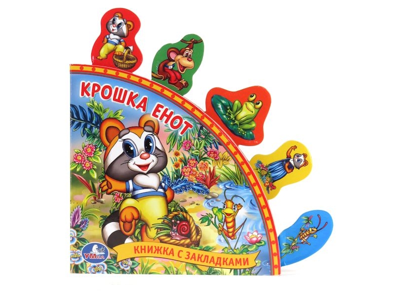 Книжка про доброго Крошку Енота, созданная по мотивам одноименного советского мультфильма, имеет очень интересную задумку. Кроме ее необычной формы, в книге красочные закладки, каждая из которых сделана в виде героя сказки. Перевернув одну из них, ребенок окажется на странице героя, соответствующего закладке, и сможет прочитать о нем. Эта книга приведет в восторг детей своими яркими и качественными иллюстрациями. Книга прослужит вам долгое время, потому что она сделана из очень плотного картона, который будет совсем не просто порвать.