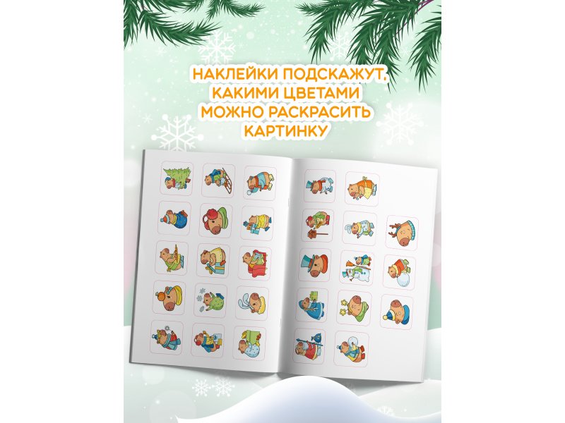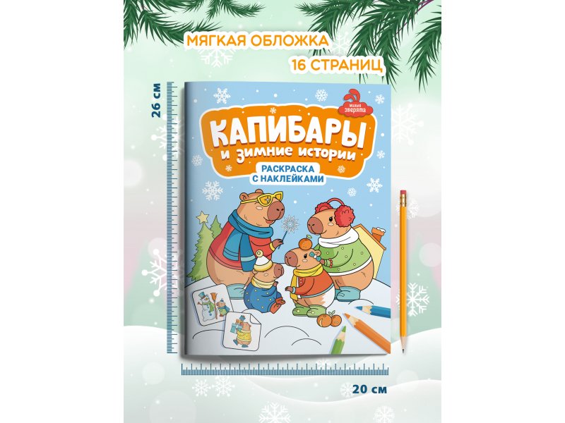 Семейные приключения с капибарами начинаются! Эти весёлые и милые зверята живут в сказочном мире, где царит атмосфера зимнего волшебства. Озорные герои, дружелюбные сюжеты и забавные детали помогут тебе весело провести время. Скорее бери карандаши, фломастеры и отправляйся в увлекательное путешествие с капибарами! Не забудь приклеить наклейку, которая подскажет, какими цветами можно раскрасить картинку.