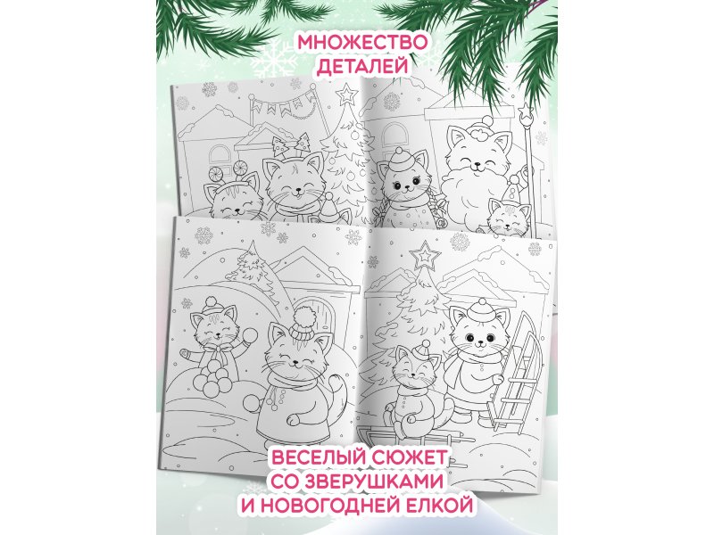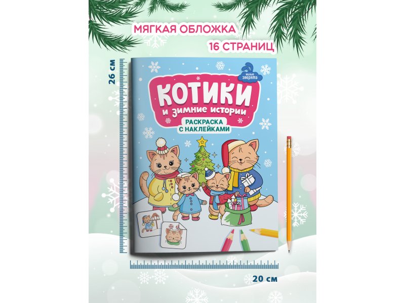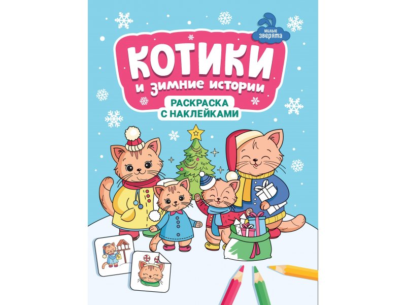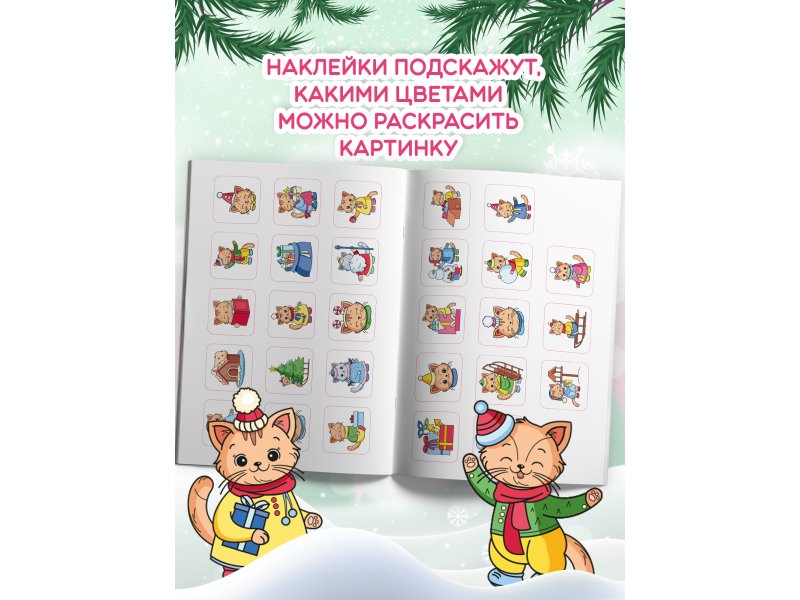 Книжка-раскраска с наклейками Феникс Котики и зимние истории