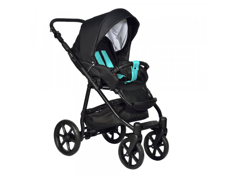 Шасси: Современная алюминиевая рама позволила сделать вес коляски со спальным блоком весом всего 13,2 кг. Регулируемую кожаную ручку легко настроить под свой рост, а передние поворотные колеса делают коляску маневренной и легкой в управлении. При необходимости колеса фиксируются, повышая проходимость. Колеса из полиуретана не боятся проколов и не требуют подкачки, они износостойкие и легкие. За плавность хода отвечают регулируемые пружинные амортизаторы и система AntiShok на передних колесах. На задних колесах предусмотрена система выдвижных осей – с ней вы не поцарапаете багажник машины при перевозке коляски. Ширина колесной базы задних колес – 59 см, трудностей с тем, чтобы вписаться в ширину проема не должно возникнуть ни в лифте, ни в магазинах.