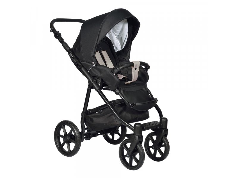 Шасси: Современная алюминиевая рама позволила сделать вес коляски со спальным блоком весом всего 13,2 кг. Регулируемую кожаную ручку легко настроить под свой рост, а передние поворотные колеса делают коляску маневренной и легкой в управлении. При необходимости колеса фиксируются, повышая проходимость. Колеса из полиуретана не боятся проколов и не требуют подкачки, они износостойкие и легкие. За плавность хода отвечают регулируемые пружинные амортизаторы и система AntiShok на передних колесах. На задних колесах предусмотрена система выдвижных осей – с ней вы не поцарапаете багажник машины при перевозке коляски. Ширина колесной базы задних колес – 59 см, трудностей с тем, чтобы вписаться в ширину проема не должно возникнуть ни в лифте, ни в магазинах.