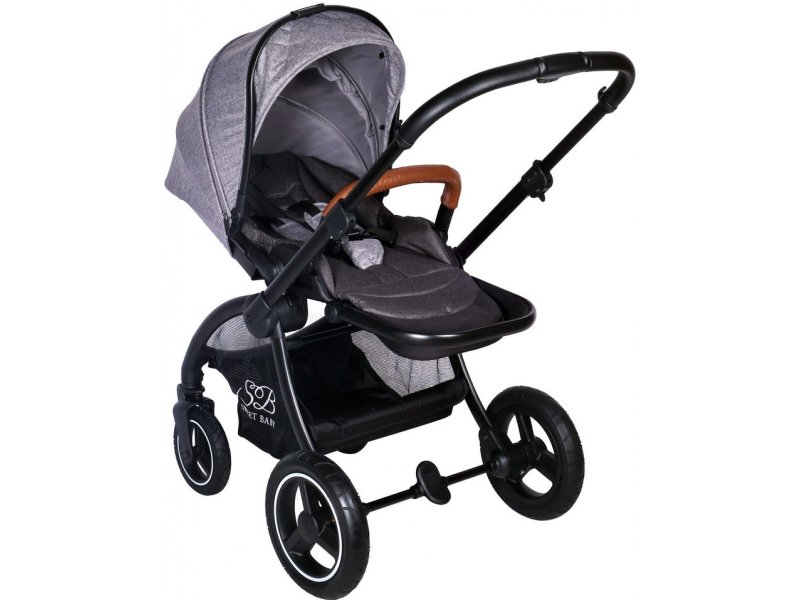 Стандартная комплектация: Шасси с большими надувными колесами; Люлька; Матрасик для люльки; Прогулочный Блок; Дождевик для люльки; Москитная сетка для люльки; Корзина для вещей; Накидка для ног для прогулочного блока