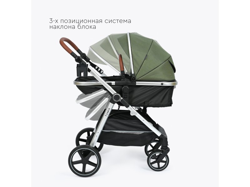 Система регулирования наклона спинки позволит малышу занять удобное положение во время прогулки или сна.