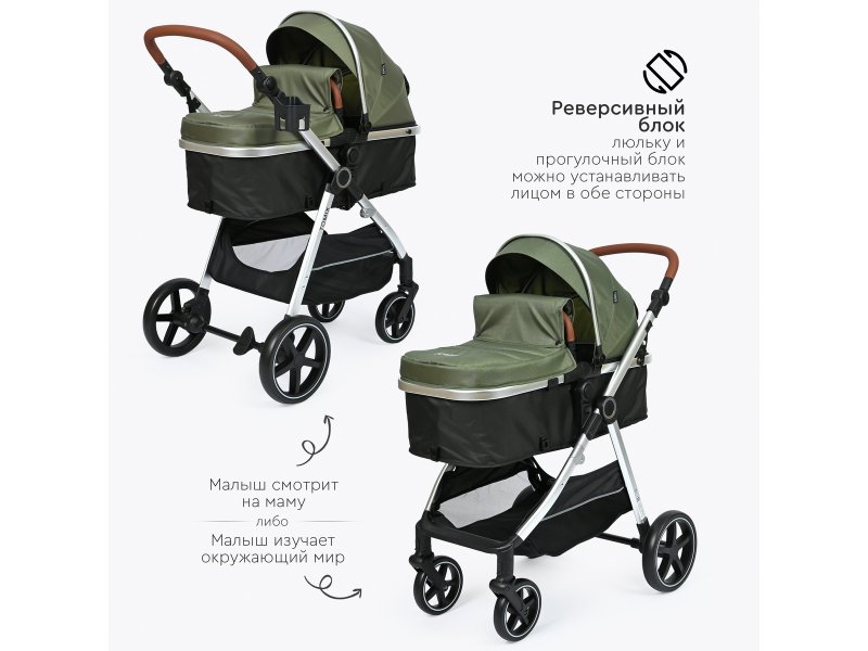 - возможность установки прогулочного сиденья/люльки лицом к маме или по ходу движения;