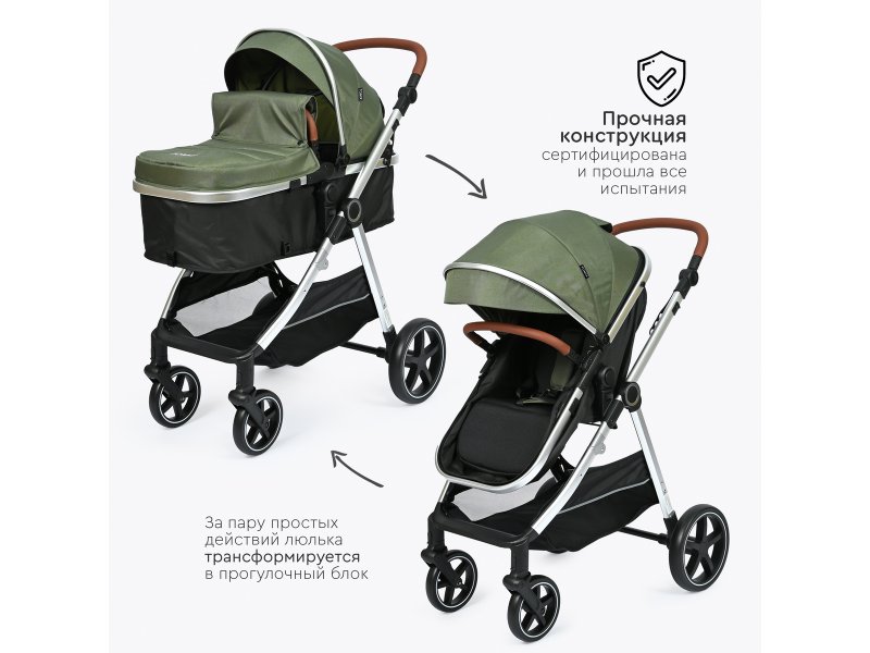 Легкая прогулочная коляска всего за несколько простых действий трансформируется в люльку и наоборот.