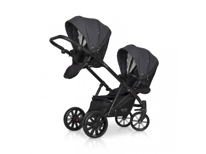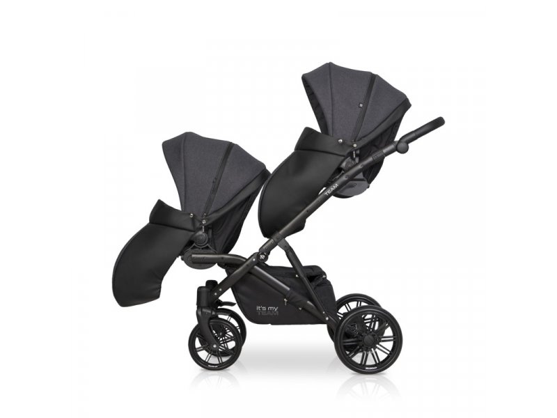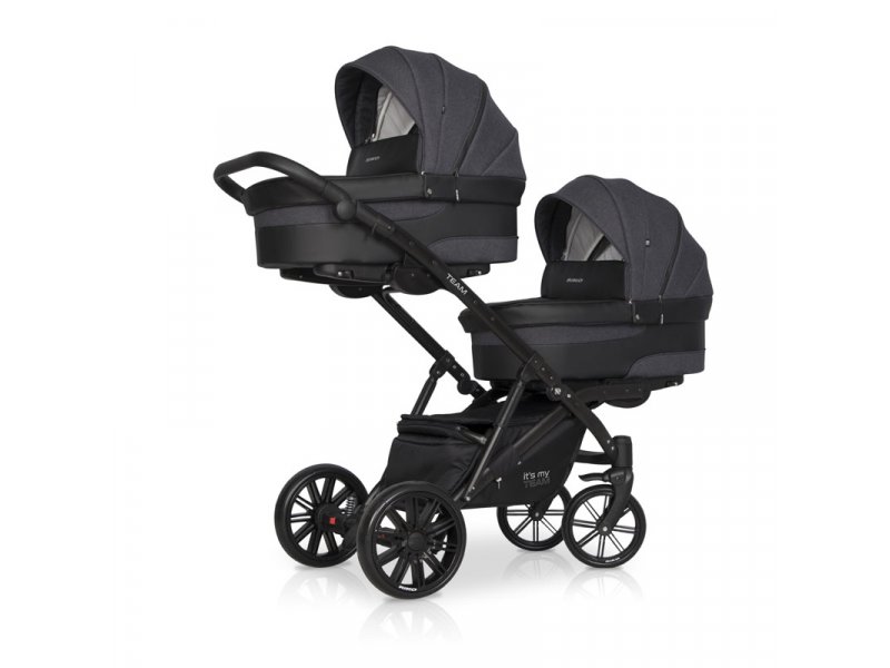 Коляска для близнецов Riko Team 2020- многофункциональная коляска для двоих. Любая конфигурация люлек и прогулочных блоков. Сиденье можно поставить так, чтобы дети могли видеть друг друга. Регулируемая жесткость задней подвески.