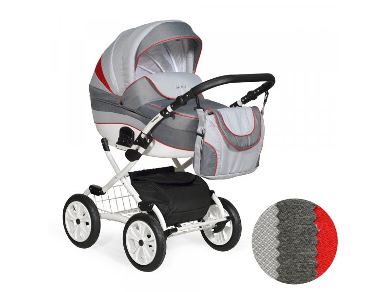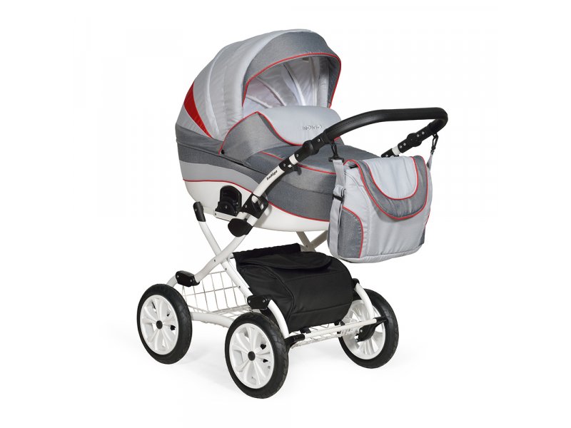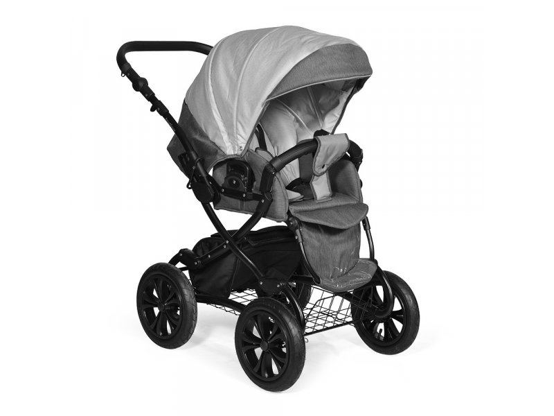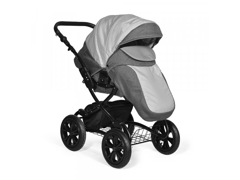 Комплектация: рама с надувными колесами, люлька-колыбель, модуль для смены «Прогулочный», утепленная накидка для ног, сумка для принадлежностей, москитная сетка, дождевик.