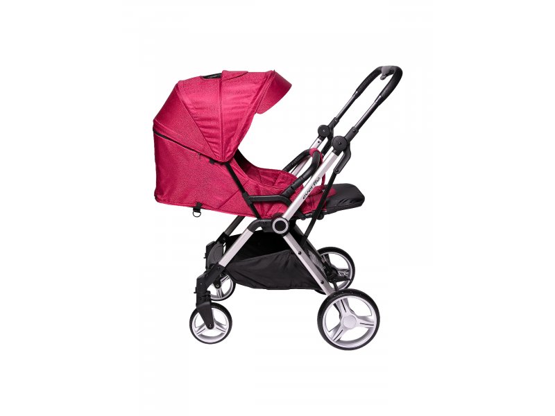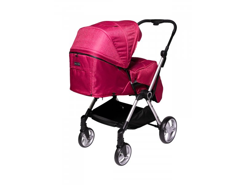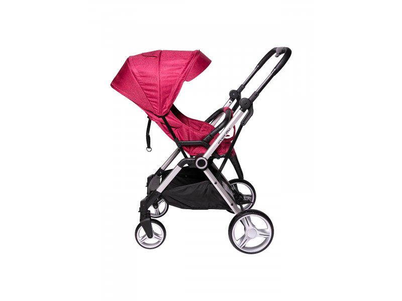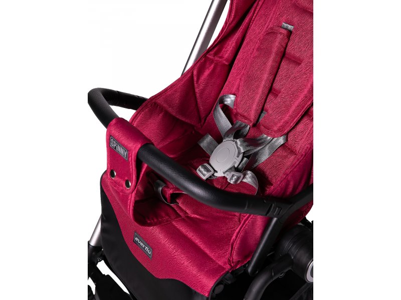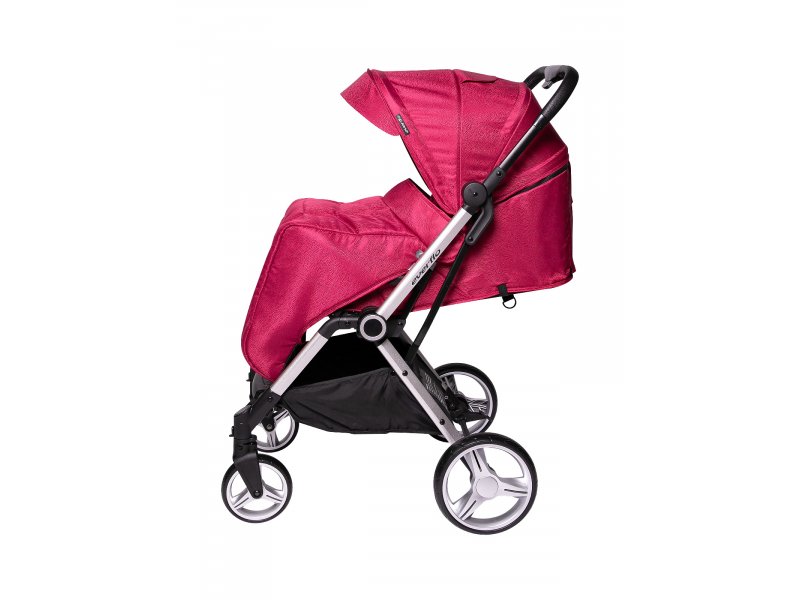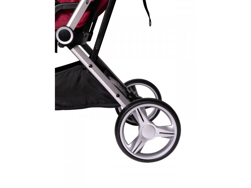 Коляска очень манёвренна и проходима, благодаря большим плавающим колёсам с фиксаторами. Капор коляски регулируется по высоте. Спинка раскладывается до горизонтального положения. Съёмный бампер с разделителем для ножек и пятиточечные ремни отвечают за безопасность малыша.