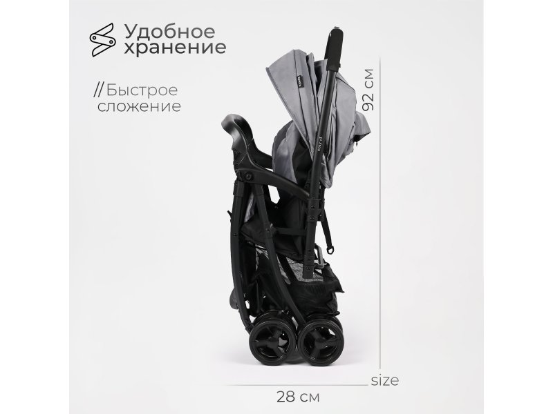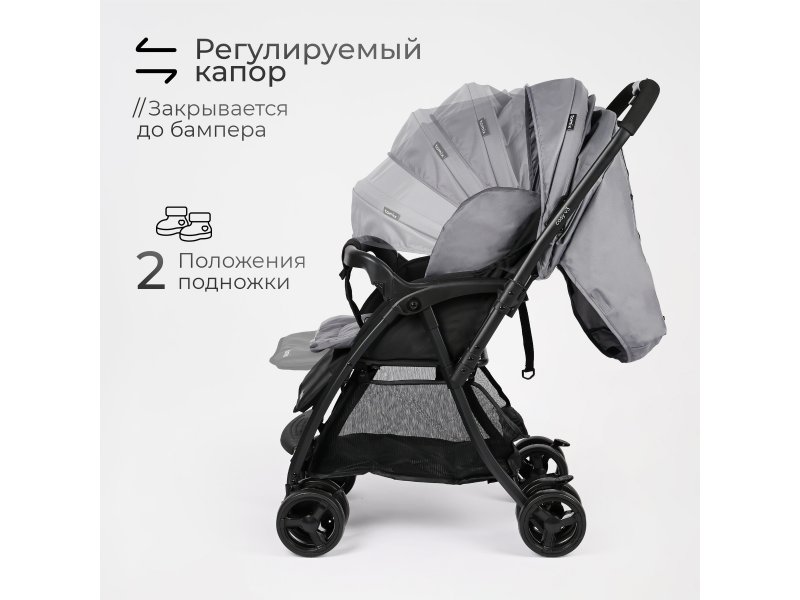 Увеличенный капюшон и тёплый чехол для ног делают эту коляску подходящей для любого сезона.