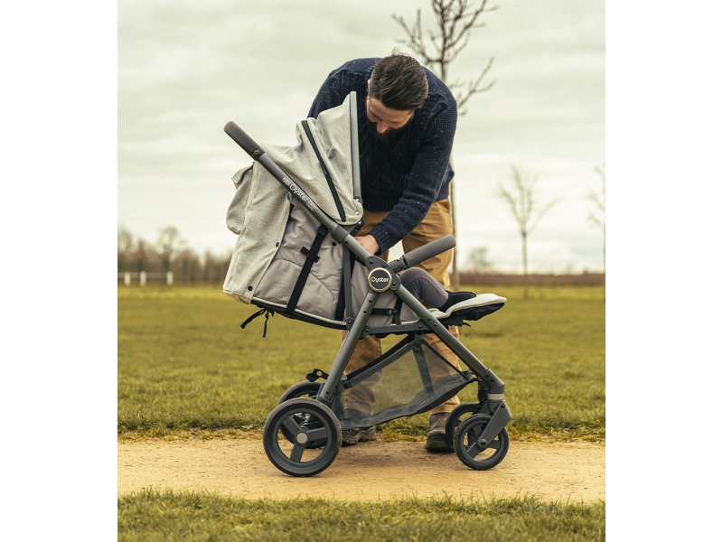Коляска прогулочная Oyster Zero Gravity с накидкой на ножки и дождевиком предназначена для малышей с рождения. Oyster Zero Gravity с новой инновационной складной системой, которая заключается в самостоятельном сложение шасси при нажатии двух педалей на задней оси коляски.