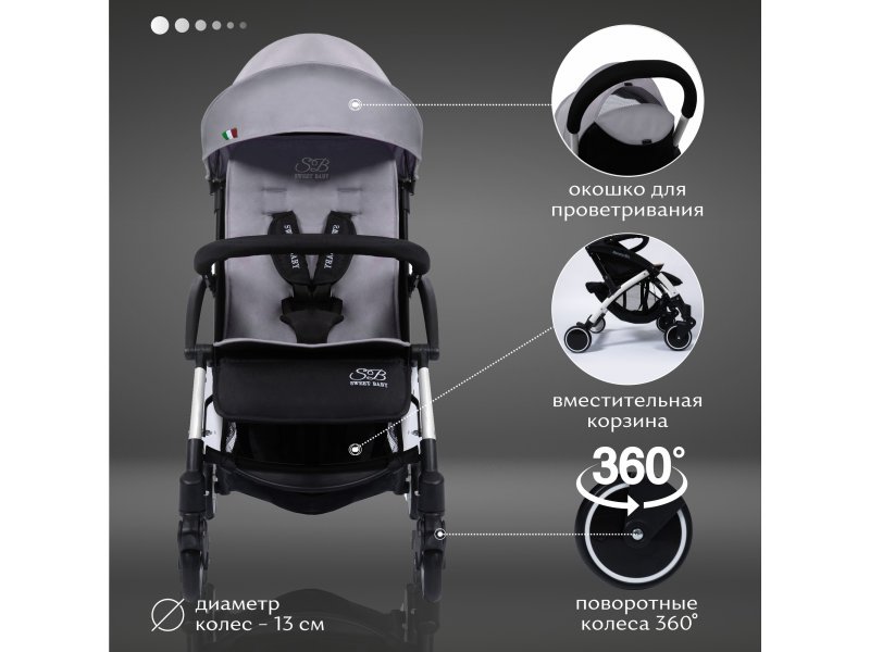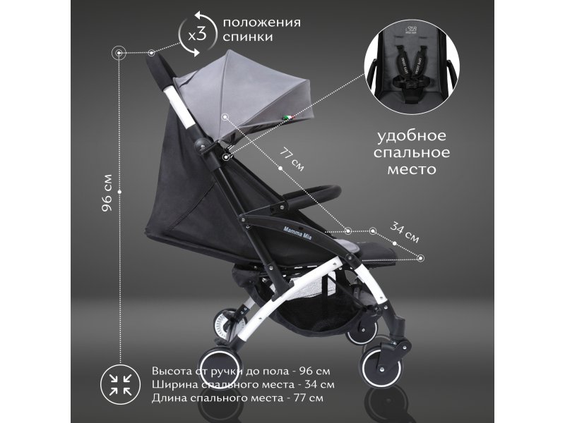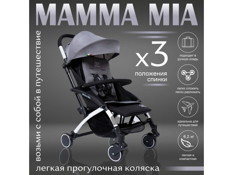Всесезонная прогулочная коляска Sweet Baby Mamma Mia – лёгкая прогулочная коляска весом всего лишь 6,2 кг. Идеальна для путешествий, как на машине, так и в самолете. Коляску можно взять вручную кладь во время полета. Коляска складывается одной рукой и занимает мало места во время хранения.