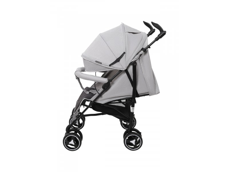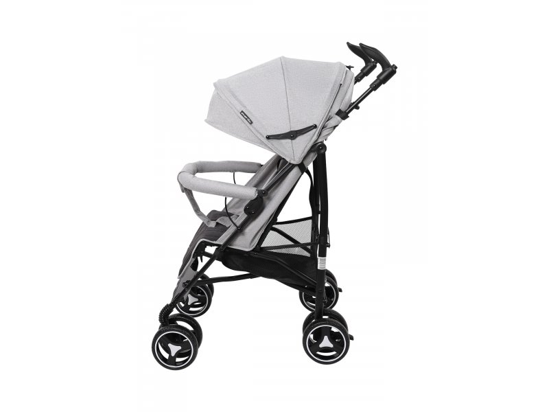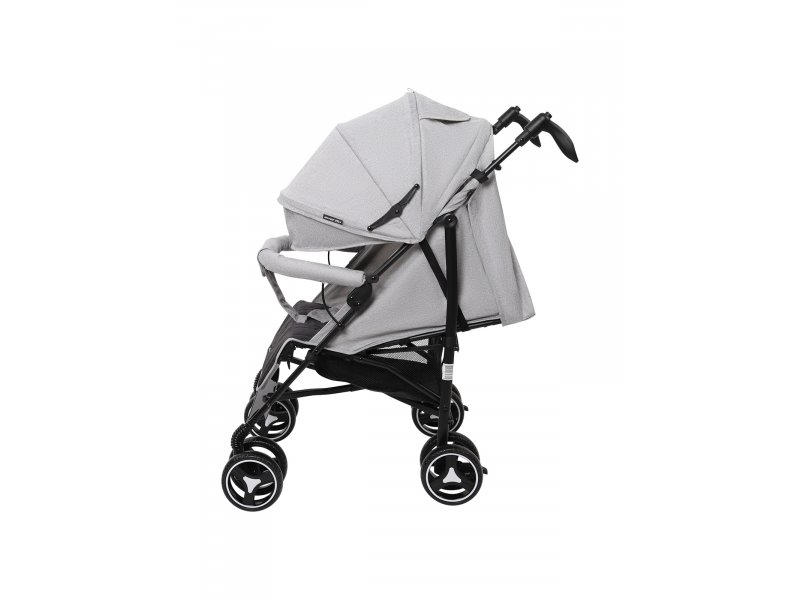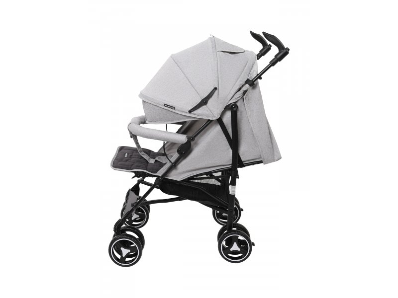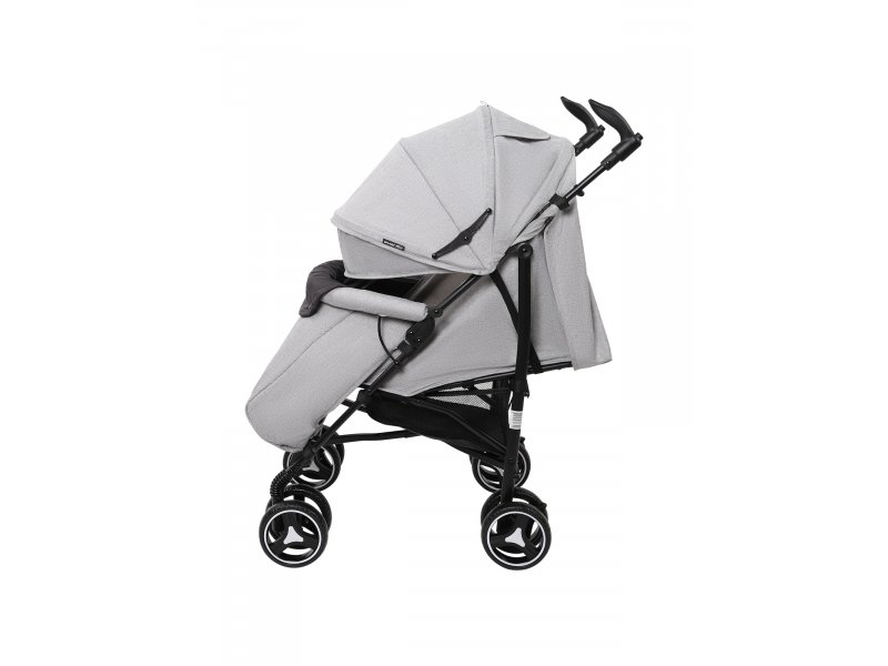 Передние колеса имеют фиксатор для передвижения по неровной поверхности и поворачиваются на 360° для максимальной маневренности. Как передние, так и задние колеса модели выполнены из прочного полиуретана и устойчивы к проколам и износу. Подножка и спинка коляски регулируются в разных положениях, включая горизонтальное: это позволяет малышу с комфортом спать во время прогулки на свежем воздухе.