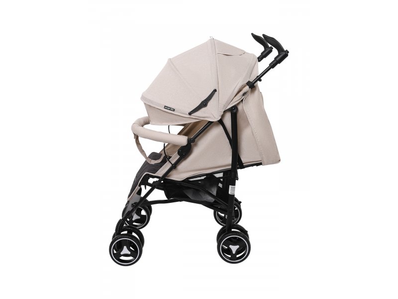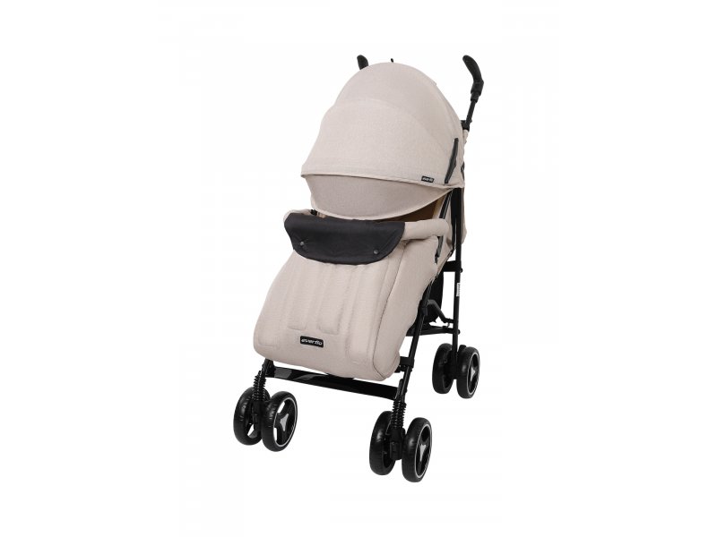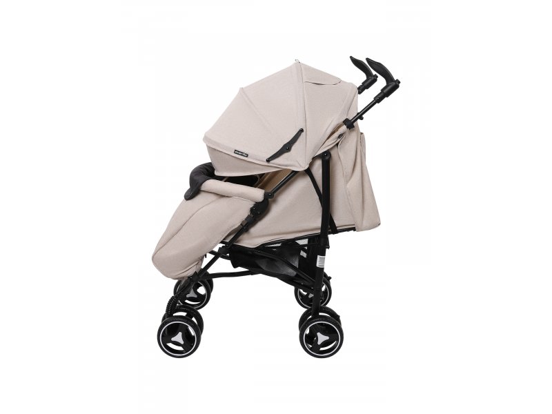 Передние колеса имеют фиксатор для передвижения по неровной поверхности и поворачиваются на 360° для максимальной маневренности. Как передние, так и задние колеса модели выполнены из прочного полиуретана и устойчивы к проколам и износу. Подножка и спинка коляски регулируются в разных положениях, включая горизонтальное: это позволяет малышу с комфортом спать во время прогулки на свежем воздухе.