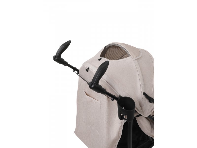 Бампер открывается посередине через нажатие специальной кнопки. Ручки коляски вращаются на 360 градусов, имея 8 положений.