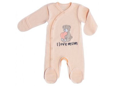 Комбинезон для новорождённых из тонкого футера с начёсом, произведённого из натурального хлопка. Застёгиваются спереди на молнию с мягкой защитой шеи и подбородка. Оригинальная набивка выполнена из стойких гипоаллергенных текстильных красителей. Все трикотажные полотна производятся в соответствии с нормами швейцарского сертификата ЭкоТекс. Состав: 100% хлопок. Ткань: Футер начес