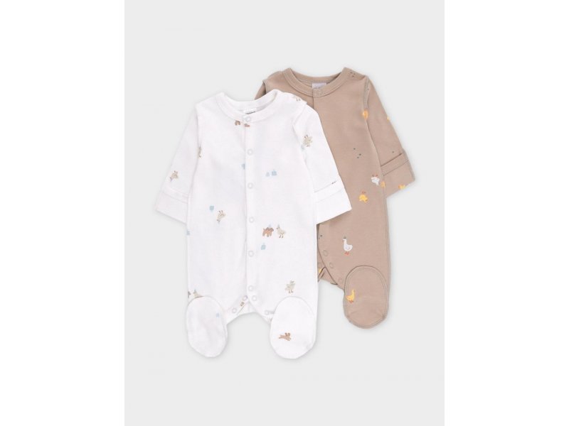 Комбинезоны для новорождённых из мягкого эластичного трикотажа, произведённого из натурального хлопка. В упаковке 2 штуки.