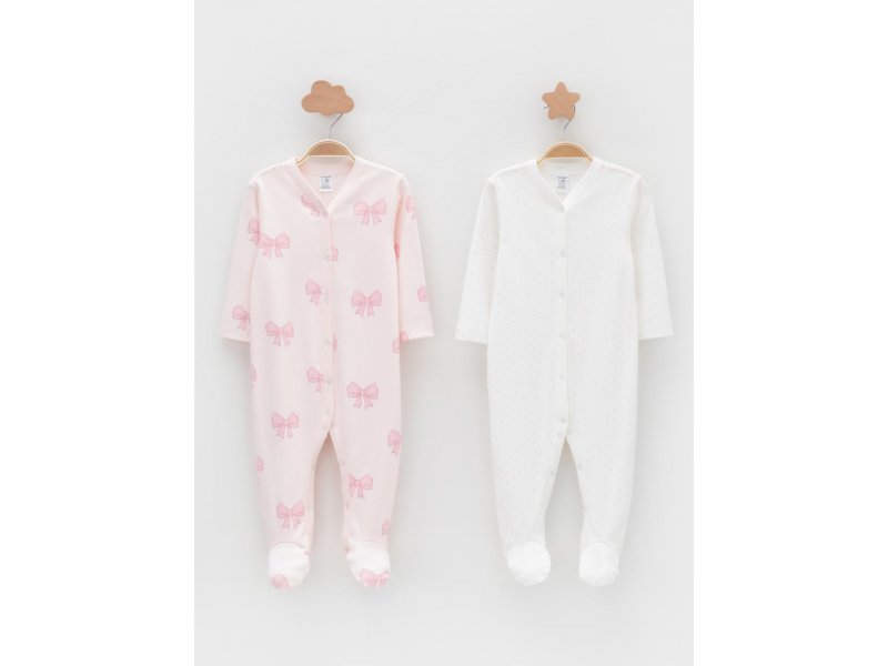 Комбинезоны для новорождённых из мягкого эластичного трикотажа интерлок, произведённого из натурального хлопка. В упаковке 2 штуки. Застёгиваются спереди на кнопки. В размере 56 на рукавах предусмотрены антицарапки, швы выполнены наружу. Оригинальная набивка выполнена из стойких гипоаллергенных текстильных красителей. Все трикотажные полотна производятся в соответствии с нормами швейцарского сертификата ЭкоТекс. Состав: 100% хлопок. Ткань: Интерлок