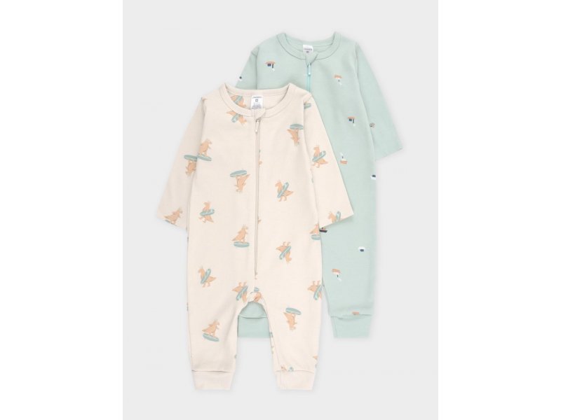 Комбинезоны для новорождённых из мягкого эластичного трикотажа интерлок, произведённого из натурального хлопка. В упаковке 2 штуки. Застёгиваются спереди на молнию, предусмотрена защита подбородка. Оригинальная набивка выполнена из стойких гипоаллергенных текстильных красителей. Все трикотажные полотна производятся в соответствии с нормами Швейцарского сертификата ЭкоТекс. Состав: 100% хлопок. Ткань: Интерлок
