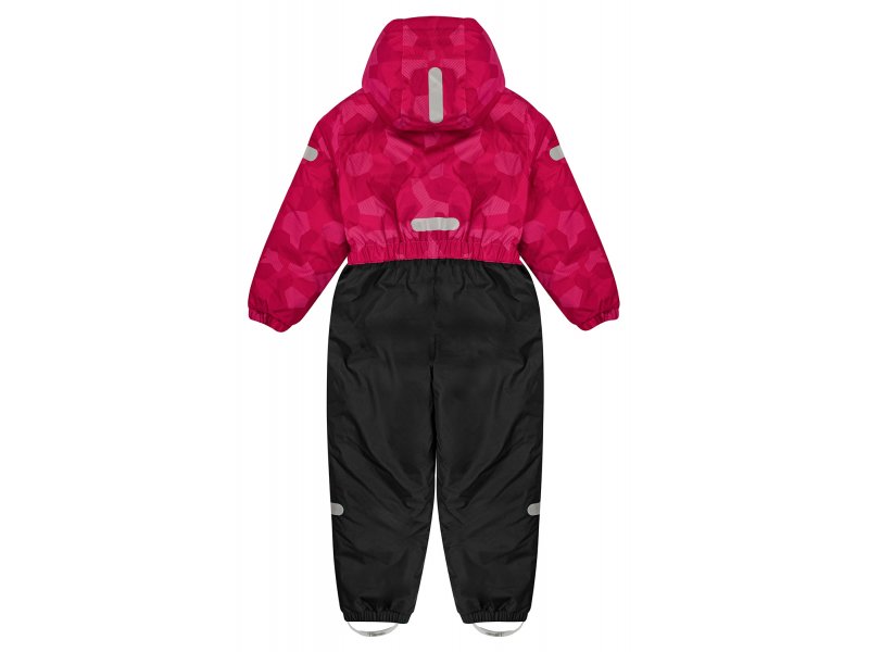 Комбинезон оснащён мягкой флисовой подкладкой и эластичными манжетами на рукавах и штанишках для защиты от ветра и влаги. Резинка на спинке для лучшего прилегания изделия. Силиконовые штрипки не дадут штанинам задираться во время прогулок. Бретели с функцией «свободные руки» позволяют носить изделие в помещении, приспустив верхнюю часть, а не снимать комбинезон полностью.