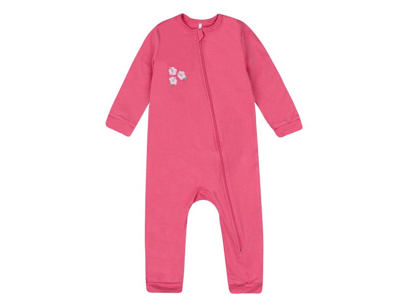 Очаровательный комбинезон Palloncino для новорожденной принцессы. Насыщенный розовый цвет, нежная вышивка-цветочек и длинный рукав создают милый образ. 100% хлопок (интерлок) обеспечит комфорт, а молния с защитой подбородка — удобство переодевания. Идеально для прогулок и дома!
