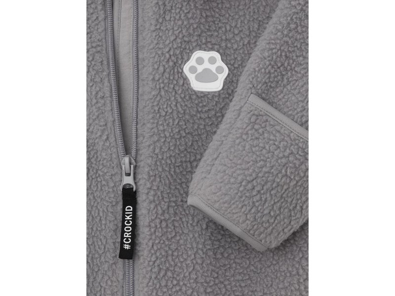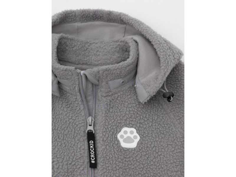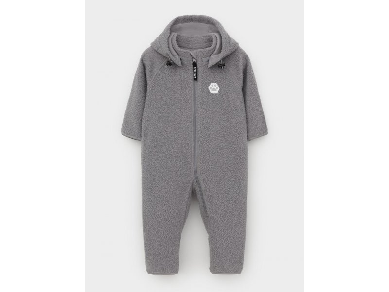 Флисовый комбинезон для мальчика со съёмным капюшоном. Капюшон регулируется по ширине с помощью эластичной утяжки со стопперами. Подклад выполнен из гладкого трикотажа супрем, произведённого из высококачественного натурального хлопка. Застёгивается на удлинённую молнию с мягкой защитой шеи и подбородка. В размерах 62, 68 и 74 на рукавах и ножках есть отвороты. Украшен декоративными ушками и нашивкой. Комбинезон сохраняет цвет и форму после многократных стирок.