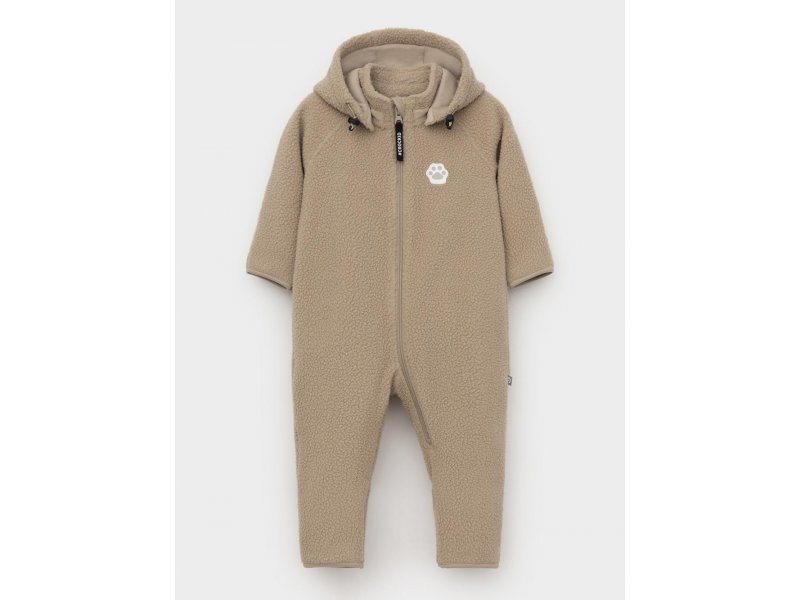 Флисовый комбинезон для девочки со съёмным капюшоном. Капюшон регулируется по ширине с помощью эластичной утяжки со стопперами. Подклад выполнен из гладкого трикотажа супрем, произведённого из высококачественного натурального хлопка. Застёгивается на удлинённую молнию с мягкой защитой шеи и подбородка. В размерах 62, 68 и 74 на рукавах и ножках есть отвороты. Украшен декоративными ушками и нашивкой. Комбинезон сохраняет цвет и форму после многократных стирок. Состав: верх: 100% полиэстер; подклад: 100% хлопок