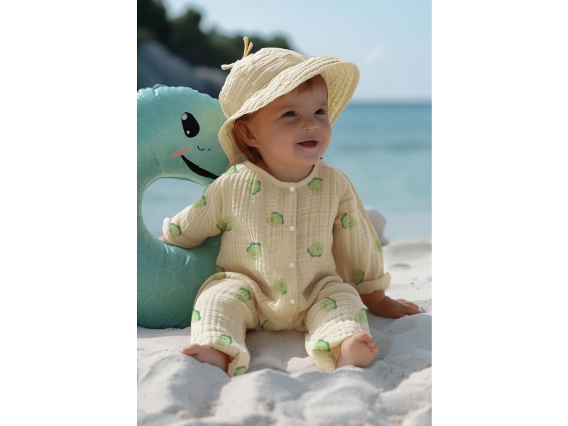 Летний комбинезон из муслина «Токио» станет идеальной одеждой для малышей в жаркие дни. - Комбинезон создан из воздушного муслина (100% хлопок) – это мягкий и нежный материал, который хорошо пропускает воздух, позволяя коже ребенка дышать. - Свободный крой - не будет натирать и доставлять дискомфорт малышу. - Кнопки по всей длине комбинезона позволят быстро одеть или раздеть ребенка. - Благодаря длинным рукавам и штанишкам, кроха будет защищен от прямых солнечных лучей.