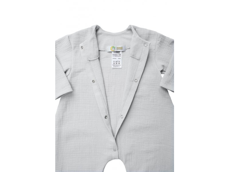 Комбинезон создан из воздушного муслина (100% хлопок) – это мягкий и нежный материал, который хорошо пропускает воздух, позволяя коже ребенка дышать.