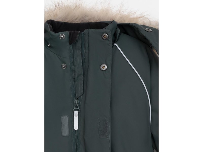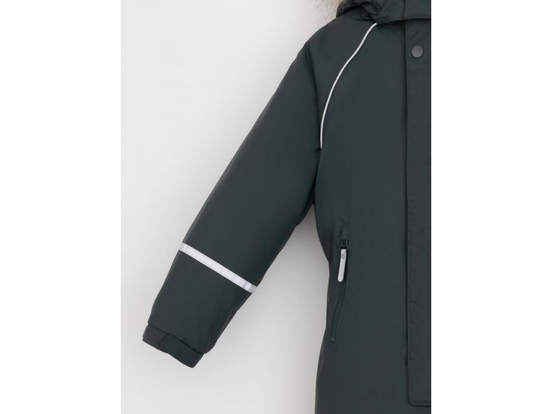 Зимний комбинезон для мальчика с утеплителем Fellex®: 250 г/м2 . Выполнен из мембранной ткани с дополнительной тефлоновой обработкой, которая предохраняет изделие от загрязнений и отталкивает влагу. Подклад выполнен из 100% полиэстера Tricot. Комбинезон застёгивается на молнию и внешнюю планку на липучках и кнопках, предусмотрена защита подбородка. Съёмный капюшон имеет эластичную утяжку со стопперами и отстёгивающийся мех на молнии. Резинка по спинке обеспечивает лучшее прилегание. По бокам два кармана на молнии. Эластичные манжеты на рукавах регулируются по ширине с помощью липучки, по низу изделия - с помощью кнопки. Внутренняя противоснежная юбка защищает обувь от попадания снега и удерживает комбинезон в закреплённом положении. В размерах с 98-104 по 116-122 предусмотрены отстёгивающиеся штрипки. Во всех изделиях верхнего ассортимента для безопасности ребёнка предусмотрены светоотражающие элементы. Состав: верх: 80% нейлон, 20% полиуретан; подклад: 100% полиэстер; Утеплитель: 100% полиэстер. Температурный ркежим: от -5º С до -25º С