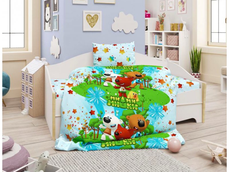 Постельное белье МиМиМишки создано специально для детей по мотивам одного из самых популярных мультсериалов, который горячо любим не только детьми, но и их родителями! Забавные Кеша, Тучка и Лисичка входят в число самых любимых мультгероев. И это не удивительно, ведь они такие веселые, озорные и добрые! Число просмотров на You tube превысило уже 1 млрд.! Постельное белье «МиМимишки» выполнено из бязи (100% хлопок), что гарантирует здоровый и крепкий сон малыша. Она хорошо впитывает влагу и пропускает воздух за счет чего в нем очень комфортно спать. Поверхность бязи ровная и гладкая, ткань мягкая и приятная на ощупь. Она отлично гладится, не требует отпаривания. Бязь долговечная, не линяет, не теряет свою форму и без труда выдерживает многочисленные стирки, что порадует любую маму! Дополнительная специальная обработка ткани придает ей блеск и сияние. Вам больше не придется уговаривать ребенка лечь спать, он будет делать это с удовольствием!