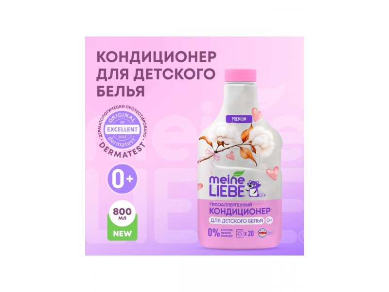 Гипоаллергенный кондиционер для детского белья Meine Liebe разработан специально для безопасной стирки белья с первых дней жизни ребенка.