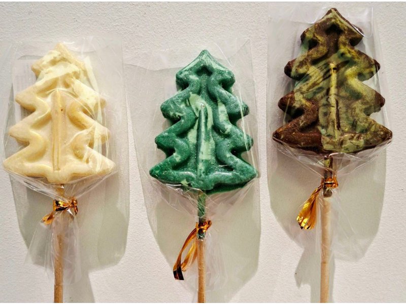 Глазурь белая: сахар, нетемперируемый заменитель какао масла лауринового типа, сыворотка сухая молочная деминерализованная, молоко сухое обезжиренное, эмульгаторы (лецитин соевый, Е476), ароматизатор "Ванилин", красители для декорирования: Е172, Е171. Глазурь белая зеленая: сахар, нетемперируемый заменитель какао масла лауринового типа, сыворотка сухая молочная деминерализованная, молоко сухое обезжиренное, эмульгаторы (лецитин соевый, Е476), ароматизатор "Ванилин", красители для декорирования: Е172, Е171, зеленый S. Глазурь кондитерская молочная: сахар, заменитель какао масла лауринового типа (масло растительное рафинированное дезодорированное, в том числе фракционированное гидрогенизированное пальмовое, сыворотка молочная сухая, какао порошок, эмульгаторы (лецитин соевый, Е476), ароматизатор "Ванилин", краситель для декорирования: Е172, Е171.