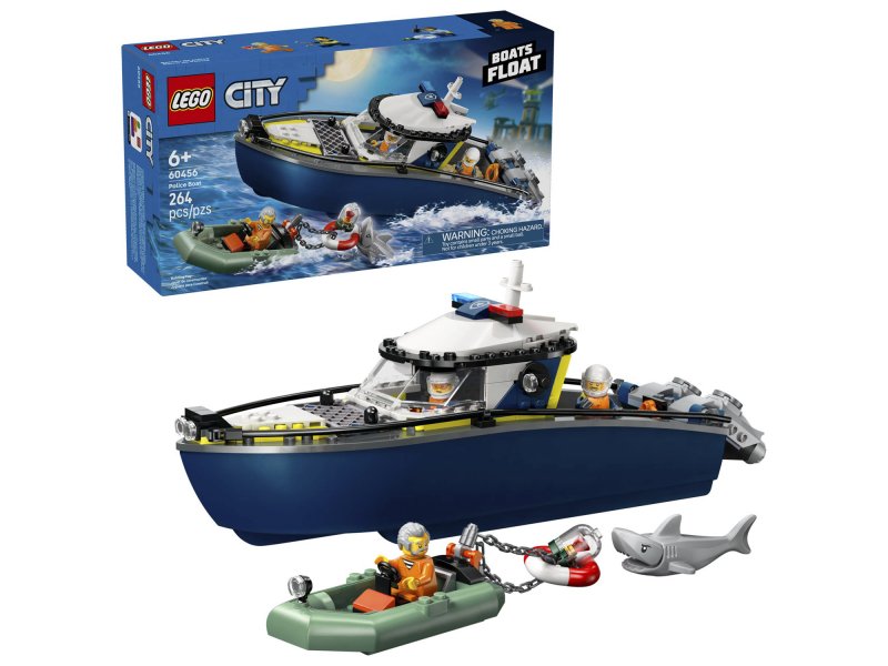 LEGO City Погоня на полицейском катере (60456) — захватывающее приключение на воде! Новинка июня 2025 года LEGO приглашает юных героев с 6 лет отправиться в водное патрулирование. Отважные офицеры преследуют грабителя, сбежавшего на моторной лодке с украденным рубином. В наборе — всё для яркой и динамичной игры: мощный полицейский катер с двумя моторами и тюремной камерой, быстроходный катер преступника, минифигурки полицейских, грабителя и даже акулы, готовой внести неожиданный поворот в сюжет. Полицейский катер вмещает двух фигурок и имеет доступ к камере, где можно запереть преступника. Обе лодки действительно держатся на воде, поэтому с этим набором можно играть не только на суше, но и в ванной или бассейне. Сценариев — бесконечное множество: от поимки на месте преступления до хитрых побегов и опасных морских схваток. Собранный полицейский катер достигает 31 см в длину, 11 см в высоту и 8 см в ширину. Всего в наборе 264 детали — оптимально для быстрой сборки и начала игры. Как и все оригинальные наборы LEGO, этот конструктор выполнен из прочных и безопасных материалов, которые соответствуют строгим стандартам качества. LEGO City Погоня на полицейском катере — это динамичные сцены, захватывающие истории и бесконечные поводы включить воображение. Подходит как для самостоятельной игры, так и для дополнения к другим наборам, превращая водную погоню в настоящее приключение без границ.