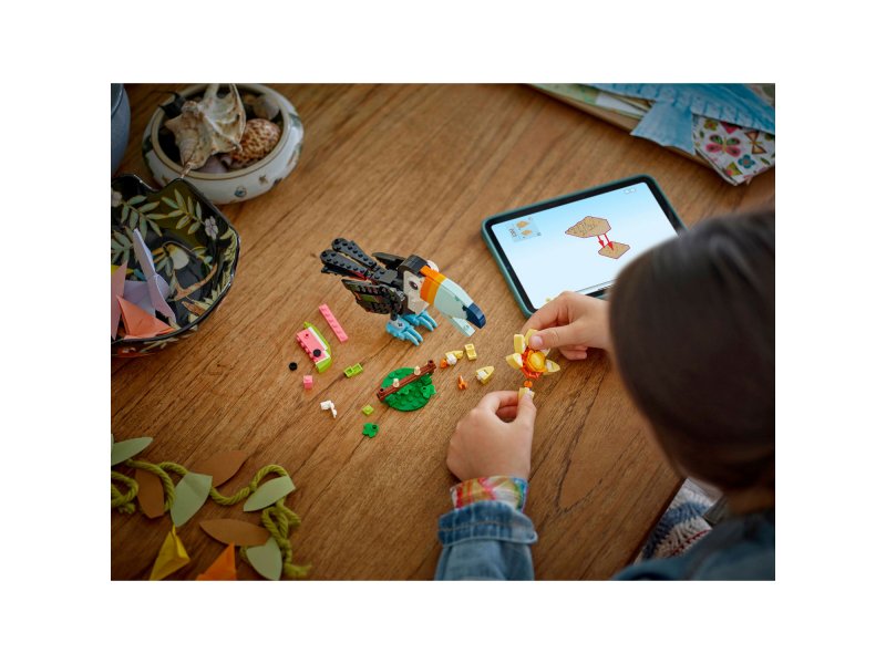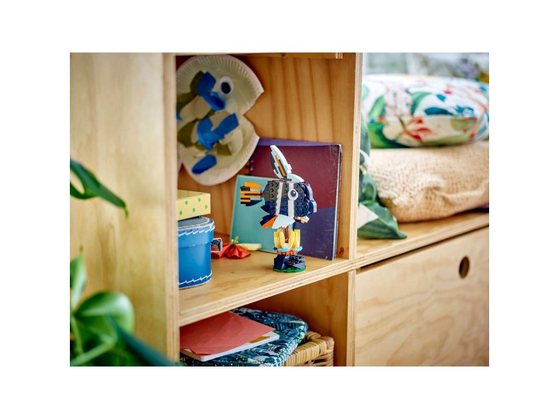 Насладитесь тропическим весельем с этим прекрасным набором LEGO Creator 3-в-1 «Дикие животные: Тропический тукан» (31173). Игрушечная птица LEGO сидит на ветке, покрытой большим цветком из кубиков и ломтиком арбуза, а для дополнительной игровой привлекательности она может двигать крыльями, клювом и хвостовыми перьями. Дети могут собрать три различных конструктора LEGO с изображением животных из одних и тех же кубиков: подвижную игрушку тукана с ломтиком арбуза, который можно положить ему в клюв; яркую игрушку бабочки с подвижными крыльями, которая летает над газоном и цветочной подставкой; и тропическую рыбку с подвижными плавниками, которая может вращаться на 360 градусов на своей подставке на морском дне. Наборы LEGO Creator 3-в-1 вдохновляют детей на творчество: в каждой коробке есть 3 разные модели! Дети будут с удовольствием собирать, перестраивать и снова собирать. Наборы 3-в-1 предлагают широкий выбор, отвечающий самым большим детским увлечениям, включая сверхбыстрые машины, удивительных животных и дома. Обратите внимание: модели нельзя собирать одновременно. В наборе 225 деталей. 3 варианта сборки тропических животных в 1 коробке – фигурка LEGO Creator 3-в-1 «Дикие животные: тропический тукан» позволяет девочкам и мальчикам в возрасте от 7 лет собирать и перестраивать 3 игровых набора с животными, используя те же кубики. Бесконечные возможности для игры — дети могут придумывать увлекательные истории с тремя различными наборами (модели нельзя собирать одновременно): игрушка тукан, игрушка бабочка или игрушка рыбка Подвижные игрушки-животные: фигурка тукана может двигать клювом, крыльями и хвостовыми перьями; игрушка-бабочка может двигать крыльями; а игрушка-рыба может двигать плавниками и вращаться на 360 градусов на своей подставке. Демонстрационные модели для декора детской спальни – после окончания игр каждую фигурку животного можно поместить на подставку, вдохновленную природой, и выставить на полке или прикроватном столике. Подарок для любителей животных – игрушка 3 в 1 обеспечит увлекательный опыт сборки и игры для мальчиков, девочек и любителей природы, которые увлекаются тропическими животными. Еще больше веселья 3 в 1 — расширьте приключения детей с другими наборами (продаются отдельно) из серии LEGO Creator 3 в 1 Игрушки LEGO Creator – каждый набор-трансформер 3 в 1 позволяет детям собрать 3 различные модели, вдохновленные их самыми большими увлечениями, включая животных, транспортные средства и дома. Размеры – Этот набор LEGO, состоящий из 225 деталей, включает в себя игрушечного тукана высотой более 12 см.