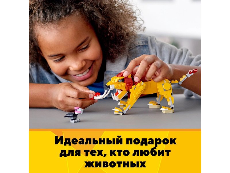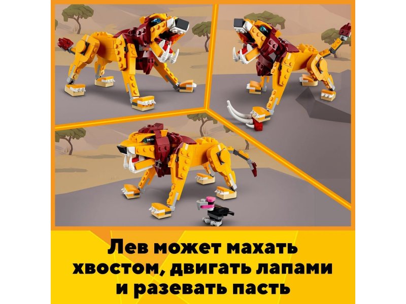 Для новых весёлых приключений с животными вы можете перестроить льва в быстрого страуса, мощного бородавочника или придумать что-то новое, воспользовавшись своим воображением и этим замечательным набором 3 в 1.