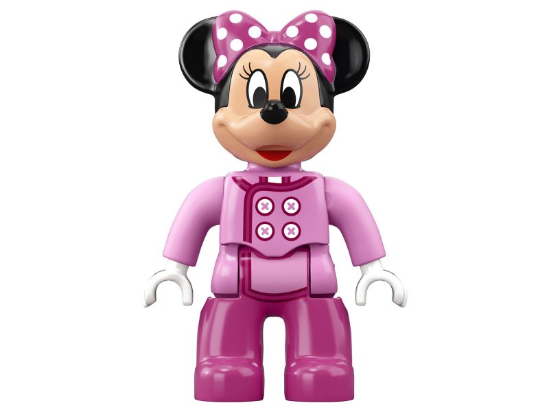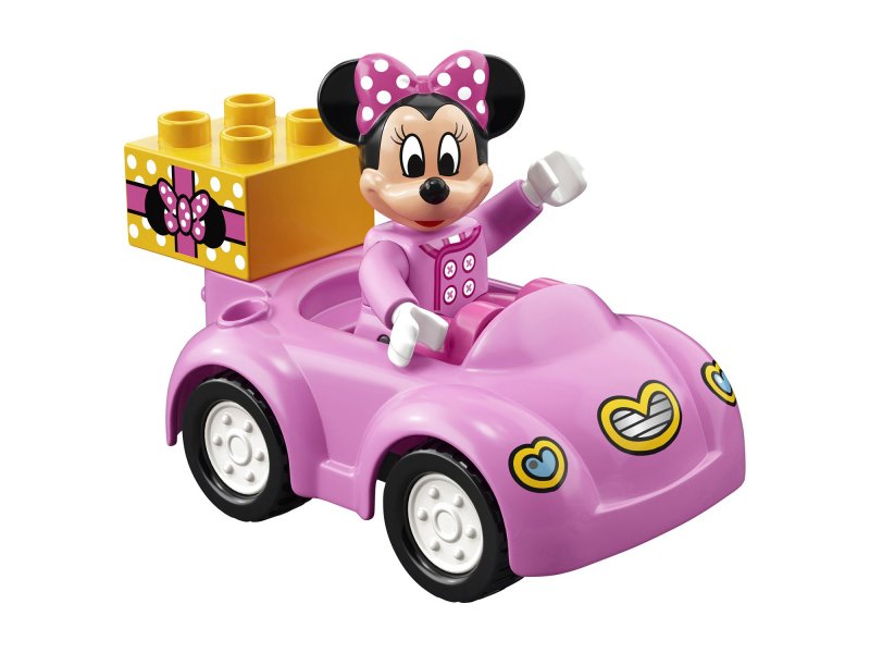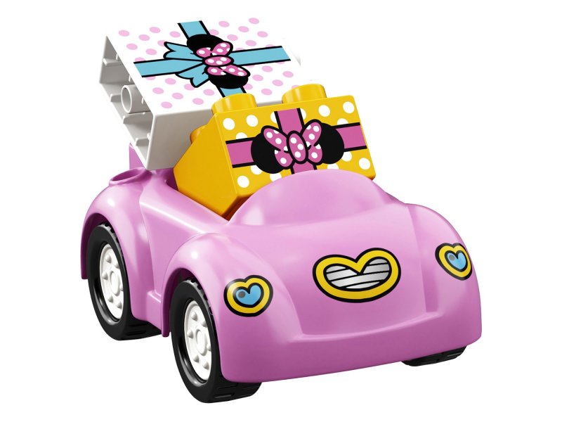 В наборе: Помещение для вечеринки, с подвижным окошком; Минифигурка Минни Маус; Мини фигурка кота Фигаро; Автомобиль; Праздничный торт; Стол; Стул; 2 подарка.