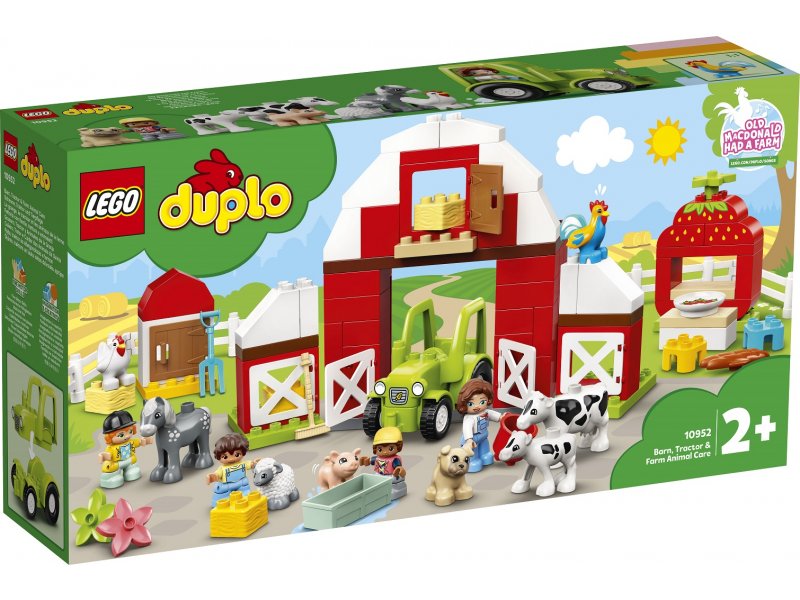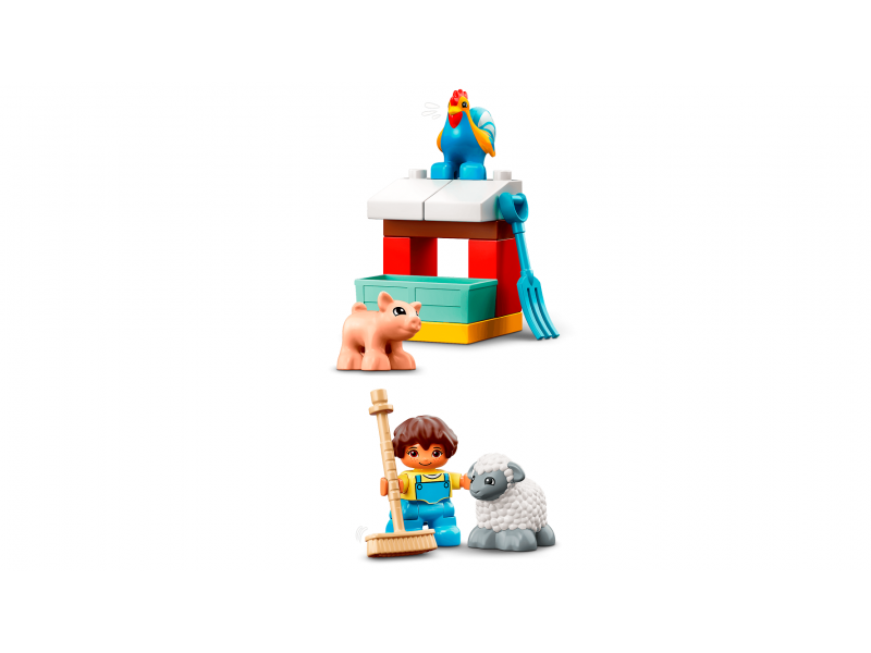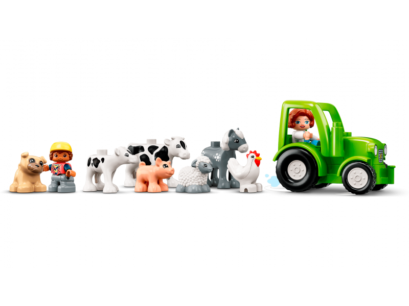 Конструктор Lego Duplo Фермерский трактор, домик и животные — это веселое обучение в игре. Здесь есть фермерские здания, трактор, а еще свинья, овца, лошадь, собака, курица, петух и коровы, за которыми надо ухаживать. Играя в различные занятия на ферме и укладывая животных спать, малыши развивают мелкую моторику, навыки общения и эмпатии.