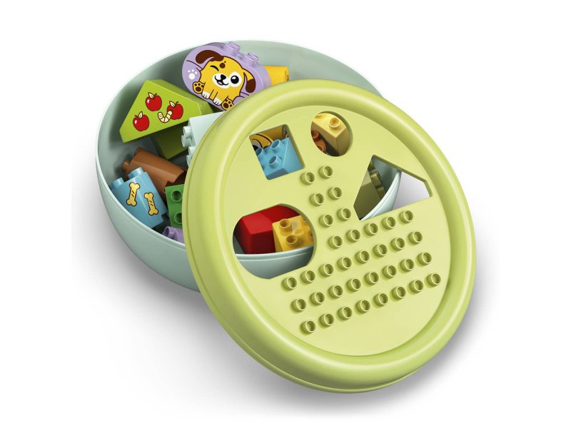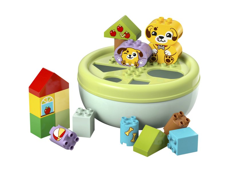 Покажите детям два способа игры со щенками с помощью набора «Сортировщик фигур: Дом для щенков» (10441). Эта игрушка развивает координацию движений глаз и рук, распознавание форм и навыки решения задач у детей в возрасте от 18 месяцев и старше. Их задача — построить игровую площадку для щенков, а затем бросать фигурки через отверстия в крышке. Эта игрушка способствует развитию пространственного мышления и предлагает познавательное развлечение для всей семьи. Родители могут показать ребенку различные формы в наборе, а малыши смогут использовать их для постройки деревьев, фигурок собак и даже дома. Затем они смогут насладиться творческой ролевой игрой с милыми щенками LEGO DUPLO, бросая им мяч или кормя их косточкой. После окончания творческой игры начинается увлекательная сортировка фигур. Дети научатся терпению и сосредоточенности, сопоставляя фигуры с отверстиями. А если им не удастся сделать это с первого раза, они будут развивать свою настойчивость и координацию рук и глаз, пытаясь снова найти нужную лунку. Игрушка для изучения фигур для маленьких любителей собак. С сортировщиком фигур: домик для щенков дети могут углубить свою любовь к животным, одновременно изучая формы. Игрушка, развивающая координацию — разноцветные кубики представлены в четырех разных формах. Их можно сложить, чтобы создать игровую площадку для щенков, или разложить и бросить через крышку собачьей миски. Развивающее развлечение для всей семьи — родители знакомят своих малышей с интересными фигурами, из которых дети могут построить собак, деревья и дом, а затем разыгрывать интересные истории с участием очаровательных щенков. Развивающая игрушка. Эта развивающая игрушка помогает малышам развивать пространственное мышление, терпение, настойчивость и навыки эмоционального совладания, пытаясь вставить фигуру в правильное отверстие. Подарок для малышей. Этот набор LEGO DUPLO станет прекрасным подарком на день рождения, Рождество или другой особый случай для детей в возрасте от 18 месяцев и старше, которые любят щенков и яркие игрушки, развивающие навыки решения проблем. Множество способов обучения через игру — ознакомьтесь с другими наборами LEGO DUPLO (продаются отдельно), которые прошли строгие испытания на безопасность, чтобы удовлетворить страсть и любопытство юных строителей. Игрушка, которая развивает навыки строительства. Игрушки LEGO DUPLO разработаны для поддержки развития малышей, помогая им учиться через игру. Размеры - В этот набор из 17 предметов входит миска диаметром 22 см с крышкой.