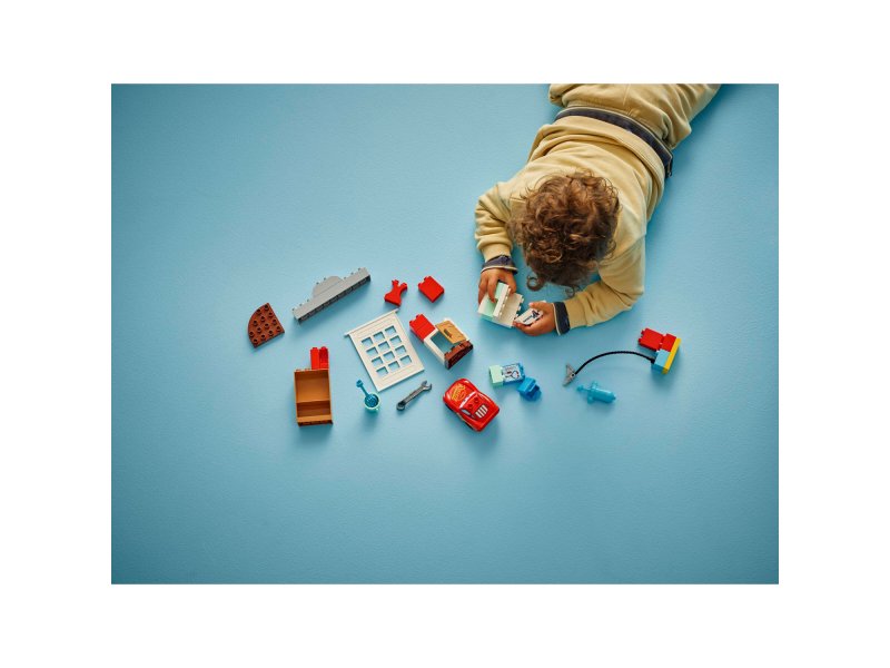 Дошкольники могут позаботиться о своей любимой гоночной машине с помощью конструктора LEGO Duplo Визит Маккуина в гараж Дока 10456.