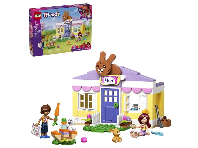 Отправляйтесь в мир историй с игрушкой «Отель для кроликов» LEGO Friends в городе Хартлэйк (42679) — для девочек и мальчиков от 5 лет. Этот набор для ролевых игр включает 2 мини‑фигурки и 2 игрушечных кролика — дети смогут придумывать истории об уходе за животными.Этот милый набор полон забавных деталей:специальная дверца для кроликов;симпатичная вывеска с кроликом;коврик в форме моркови;зона отдыха с кроватками для кроликов;чек‑лист для регистрации кроликов в отеле (заезда и выезда);зона отдыха на улице, где кролики могут посидеть вместе и полакомиться кексом с морковкой.Также в наборе есть аксессуары, которые вдохновляют детей ухаживать за питомцами:щётка;клубок пряжи;корм и вода для кроликов;совок для уборки за кроликами.Этот набор станет отличным подарком для девочек и мальчиков, которые любят животных. С приложением LEGO Builder дети погрузятся в интуитивное строительное приключение: смогут приближать и вращать модели в 3D по 3D‑инструкциям, сохранять наборы и отслеживать прогресс.В наборе 161 кубик.Отель для кроликовОтправляйтесь в мир историй вместе с девочками, мальчиками и любителями питомцев от 5 лет с этим набором с кроликами. В него входят:2 мини‑фигурки;2 кролика;аксессуары в тематике моркови.Забавные особенности отеляСоберите и исследуйте детализированный отель для кроликов с:дверцей для питомцев;зоной отдыха с кроватями для кроликов;множеством милых деталей — например, ковриком в форме моркови.2 персонажа LEGO FriendsВ набор «Отель для кроликов» LEGO Friends в городе Хартлэйк (42679) входят мини‑фигурки Пейсли и Лео, а также 2 фигурки животных — это пробуждает воображение.Аксессуары для игрушечных кроликовВ наборе множество аксессуаров для ухода за питомцами:щётка;клубок пряжи;кекс с морковкой;корм и вода для кроликов;совок для уборки за кроликами.Идея подаркаЭтот игровой набор станет весёлым подарком для любителей животных, которые любят придумывать собственные истории с игрушками для ролевых игр.Онлайн‑шоуОткройте для себя больше идей для творческой игры с другими наборами (продаются отдельно) и онлайн‑шоу LEGO Friends: The Next Chapter, где дети познакомятся с персонажами города Хартлэйк.Цифровые инструкции по сборкеПриложение LEGO Builder проведёт детей через цифровое строительное приключение: в нём можно приближать и вращать модели по 3D‑инструкциям, а также сохранять наборы и отслеживать прогресс.РазмерыНабор из 161 кубика включает модель размерами:высота — более 4 дюймов (11 см);ширина — 5 дюймов (13 см);глубина — 5 дюймов (12 см).