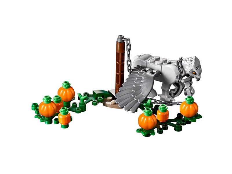 Конструктор Lego Harry Potter Хижина Хагрида: спасение Клювокрыла. Захватывающие наборы конструкторов по фильмам о Гарри Поттере и волшебной школе Хогвартс не перестают радовать всех поклонников. Собирай полюбившиеся сцены и представляй себя юным волшебником! Конструктор LEGO Harry Potter Хижина Хагрида: спасение Клювокрыла посвящен яркой сцене из фильма «Гарри Поттер и Узник Азкабана». Друзьям Гарри Поттеру, Гермионе и Рону придется тайно прокрасться в хижину Хаггрида и, пока тот отвлекает неожиданных и очень неприятных гостей, освободить Клювокрыла от неминуемой гибели. Конструктор состоит из 496 деталей. Хижина Хаггрида состоит из двух смежных построек серого цвета с имитацией каменной кладки и треугольными крышами. Если посмотреть на хижину с обратной стороны, можно увидеть внутреннее убранство - кухню и рабочий кабинет. Перед хижиной Хаггрида располагается огород с тыквами и площадка с цепью, где сидит Клювокрыл.