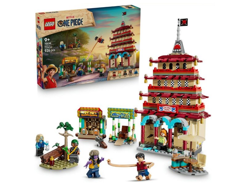 Конструктор LEGO Icons коллекция One Piece «Битва в Арлонг Парке» (75638) — интерактивная игрушка для детей, любящих экшен и приключения. Этот высококачественный набор LEGO, воссоздающий эпическую битву между пиратами Соломенной Шляпы и пиратами Арлонга, станет отличным подарком для мальчиков и девочек в возрасте от 9 лет и старше. • Конструктор Battle at Arlong Park: этот подарок LEGO для мальчиков и девочек в возрасте от 9 лет представляет собой игрушку коллекции One Piece для детей, воссоздающую битву между пиратами Соломенной Шляпы и пиратами Арлонга. • Минифигурки LEGO в стиле сериала: в набор входят минифигурки Луффи (Luffy) с удлиняющимися руками, Нами (Nami), Усоппа (Usopp), Арлонга (Arlong) и Чу (Chu). • Веселая приключенческая игрушка для детей: юные поклонники присоединяются к пиратам Соломенной Шляпы в дерзкой миссии в пагоде Арлонг Парка, которая приведет к эпическому сражению с вражеской пиратской бандой. • Пиратская игрушка LEGO полная приключений: дети могут нажать на верхнюю часть модели башни-пагоды, чтобы разрушить ее, попрактиковаться в стрельбе в тире, поместить злодея внутрь здания, где атакуют акулы, и многое другое. • Подарок для увлекательных игр в стиле приключения: этот набор «ЛЕГО» для сборки, игры и демонстрации станет отличным подарком для мальчиков и девочек, которые являются поклонниками сериала One Piece. • Игровой набор из 926 деталей: размеры здания пагоды составляют более 29 см в высоту, 16 см в ширину и 10 см в глубину.