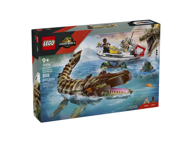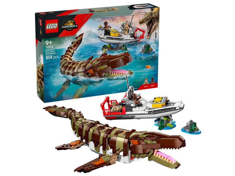 В этом кирпичном конструкторе Погоня за Мозазавром на лодке (76974) для детей и фанатов экшена от 9 лет и старше вас ждут бесконечные приключения.