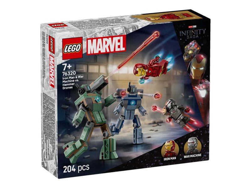 Конструктор LEGO Super Heroes «Железный Человек и Воитель против Хаммер-дронов» (76320) — это сборная супергеройская игрушка для детей, которые любят сражения с коллекционными фигурками LEGO ǀ Marvel. Этот небольшой набор с забавными функциями и крутым оружием станет идеальным подарком для мальчиков и девочек от 7 лет и старше. • Супергеройская игрушка для сборки и игры: Iron Man & War Machine vs. Hammer Drones – это небольшой подарок для детей, включающий в себя сборные боевые игрушки для мальчиков и девочек в возрасте от 7 лет и старше. • Минифигурки LEGO ǀ Marvel: набор включает минифигурку Железного человека (Iron Man) с синими бластерами в руках и ногах и лазерным оружием, а также минифигурку Воителя (War Machine) с красными бластерами в руках и ногах и шипометом. • Сборные Хаммер-дроны: полностью шарнирные, поэтому дети могут устанавливать сборные фигурки в различные положения для реалистичной динамичной игры. • Роботы, созданные для сражений: зеленый Хаммер-дрон оснащен пружинным шутером на плече, а синий Хаммер-дрон — толкающими шутерами на каждом плече. • Подарок от супергероев: порадуйте детей, которым нравится Железный человек, боевики или фильмы Marvel, этим набором для сборки и игры, предназначенным для мальчиков и девочек в возрасте от 7 лет и старше. • Игровой набор «ЛЕГО» из 204 деталей для сборки: этот универсальный игровой набор с зеленым Хаммер-дроном высотой более 10 см удобно брать с собой и играть с ним, куда бы дети ни пошли.