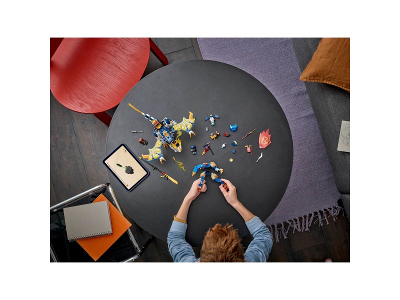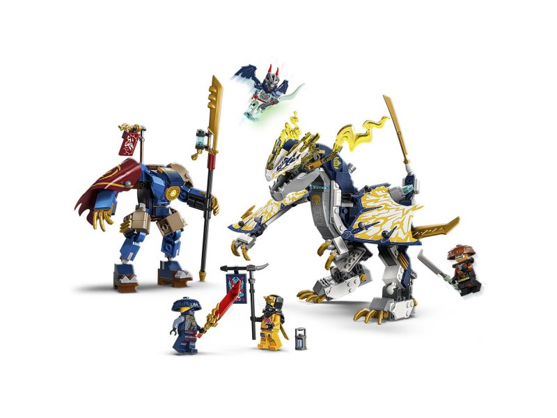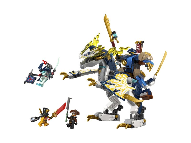 Комбинированная игрушка ниндзя «Механический драконий всадник Плута» 71843 позволяет мальчикам и девочкам разыгрывать истории из третьего сезона мультсериала «Ниндзяго: Восстание драконов».
