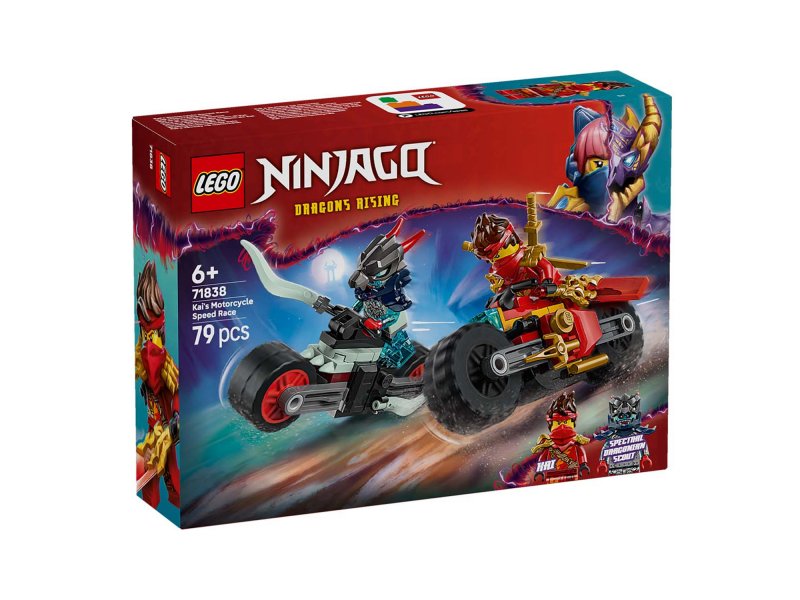 Игровой набор LEGO Ninjago Скоростная гонка на мотоцикле Кая 71838 позволяет мальчикам и девочкам воссоздать динамичные сцены из 3-го сезона телешоу NINJAGO "Восстание драконов".